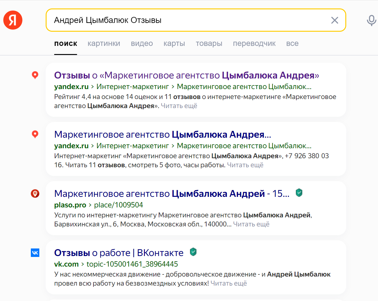 Например, “Андрей Цымбалюк Отзывы”